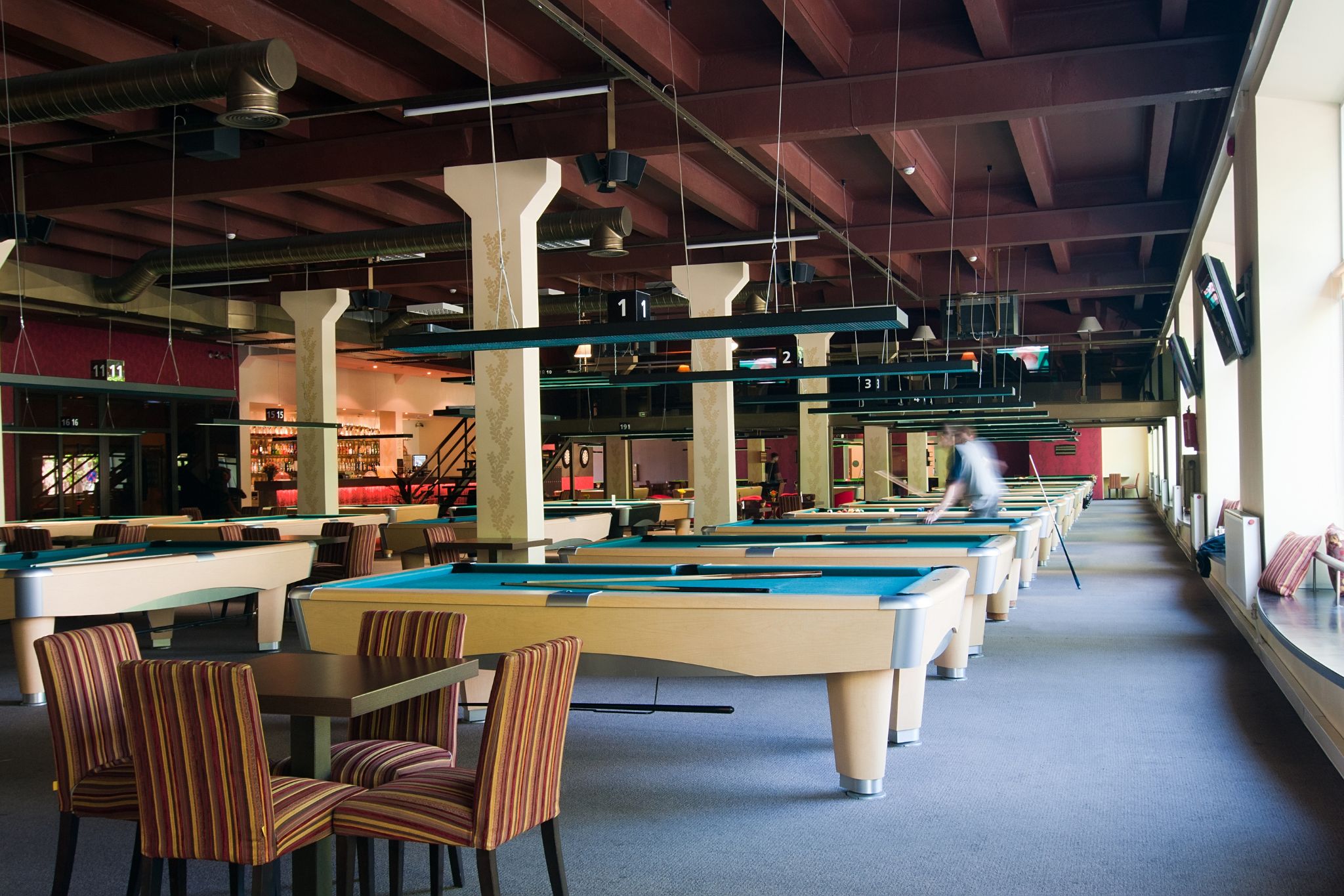 Ánh sáng: Kết hợp ánh sáng tự nhiên và đèn chiếu sáng phù hợp. Sử dụng đèn LED để tiết kiệm năng lượng và điều chỉnh độ sáng, tạo không gian ấm cúng và thu hút. Đèn cần được lắp đặt sao cho không tạo bóng trên bàn bida và giúp người chơi dễ tập trung hơn.