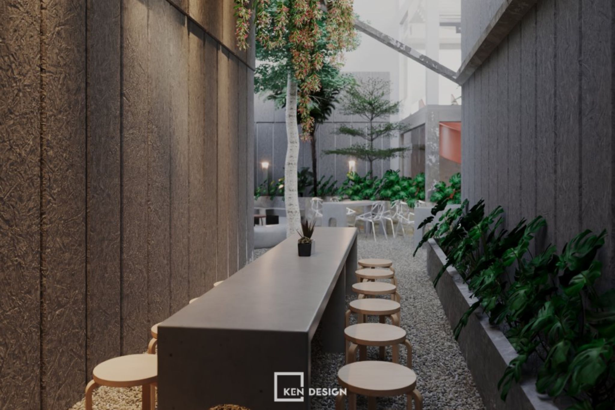 Chủ đầu tư quán mong muốn thiết kế không gian đơn giản nhưng không kém phần tinh tế, nơi khách hàng có thể thưởng thức cà phê và tìm lại sự an yên. Với tiêu chí đó, đội ngũ KenDesign đã tư vấn phong cách tropical kết hợp với nét mộc mạc và tối giản.