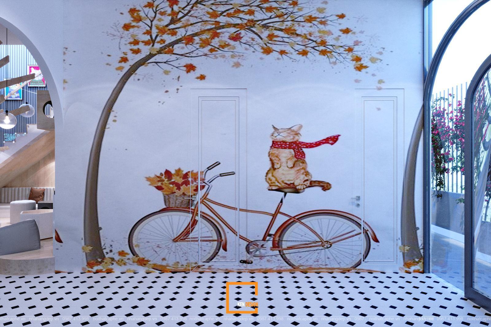 Quán cafe thú cưng cũng cần một không gian khác biệt ví dụ như mang nét dễ thương và tinh nghịch để tạo nên sự hòa hợp và thích thú cho khách hàng. Do đó, có thể sử dụng chính hình ảnh của thú cưng trong quán để trang trí cho không gian. Sử dụng giấy dán tường hoặc vẽ trực tiếp lên tường sẽ là một giải pháp đúng đắn và lại tiết kiệm được chi phí. Ngoài ra bạ có thể đầu tư trang trí những khu vực để cho thú cưng vui chơi, như mèo thì thiết kế khu vực leo cây, chơi bóng…Cần thiết kế khu vực vệ sinh riêng cho thú cưng để đảm bảo sự sạch sẽ, văn minh trong quán.