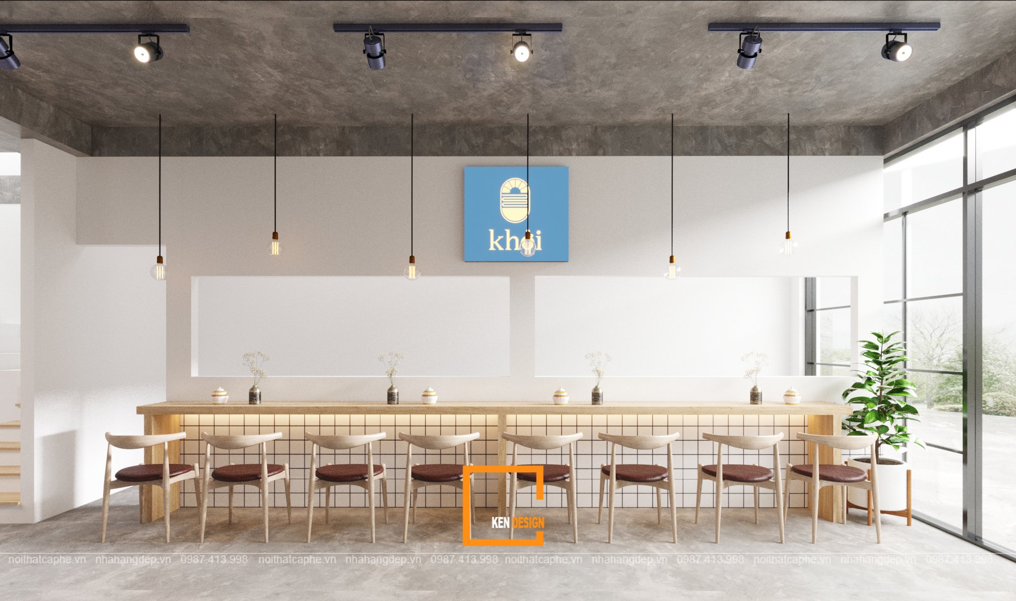Nhà hàng bún khởi được thiết kế bởi công ty thiết kế KenDesign. Thiết kế nhà hàng bún khởi mang phong cách hiện đại sáng tạo trong thiết kế nhà hàng ẩm thực truyền thống. Thổi làn gió mới vào không gian ẩm thực truyền thống. Thiết kế nhà hàng bún khởi với đặc thù nhà phố có diện tích thiết kế 50m2/ sàn, nhà hàng 2 sàn có tổng diện tích thiết kế 100m2. Nối bật trong thiết kế nhà hàng là phong cách thiết kế hiện đại, trẻ trung, đơn giản khác biệt so với phong cách của những nhà hàng ẩm thực truyền thống trước đây.